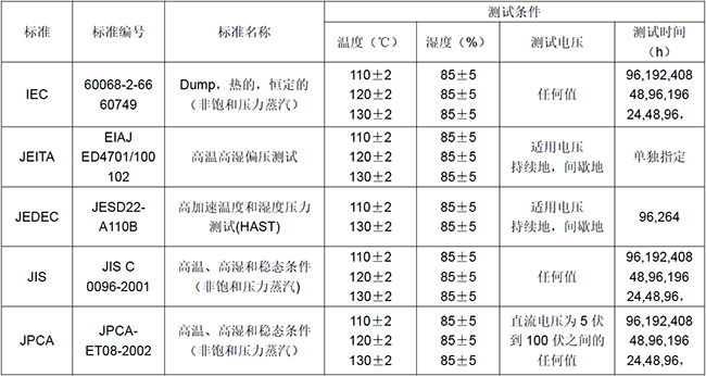 HAST 測(cè)試常用標(biāo)準(zhǔn)清單